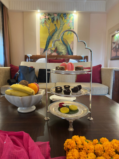 Udaipur, known as the "City of Lakes," is renowned for its stunning palaces, serene lakes, and vibrant culture. The City Palace, situated on the banks of Lake Pichola, offers panoramic views of the city and its surroundings. Udaipur's romantic ambiance is further enhanced by its intricate architecture, bustling markets, and cultural festivals. A boat ride on Lake Pichola, with views of the Jag Mandir and Jag Niwas, is a quintessential experience. The Taj Mahal Palace Hotels manage the iconic Lake Palace on behalf of the Royal family of Udaipur. Nestled on Lake Pichola, the Taj Lake Palace is a testament to Rajasthan’s royal legacy. Stepping onto its marble floors is like stepping into a bygone era, where elegance and splendour reign supreme, transporting you to a world where time stands still. The palace was designed and built as a palace and not a hotel, every room is different with its own layout and character. This hotel has hosted the ‘rich and famous over the years. My suite was like an apartment - with 7 rooms! The family group were treated to a roof top dinner with gorgeous views back to the city palace. Amidst this magic, there’s no better time to experience Udaipur’s vibrant spirit than during the annual Gangaur Festival. They group were fortunate to witness it firsthand on this visit.